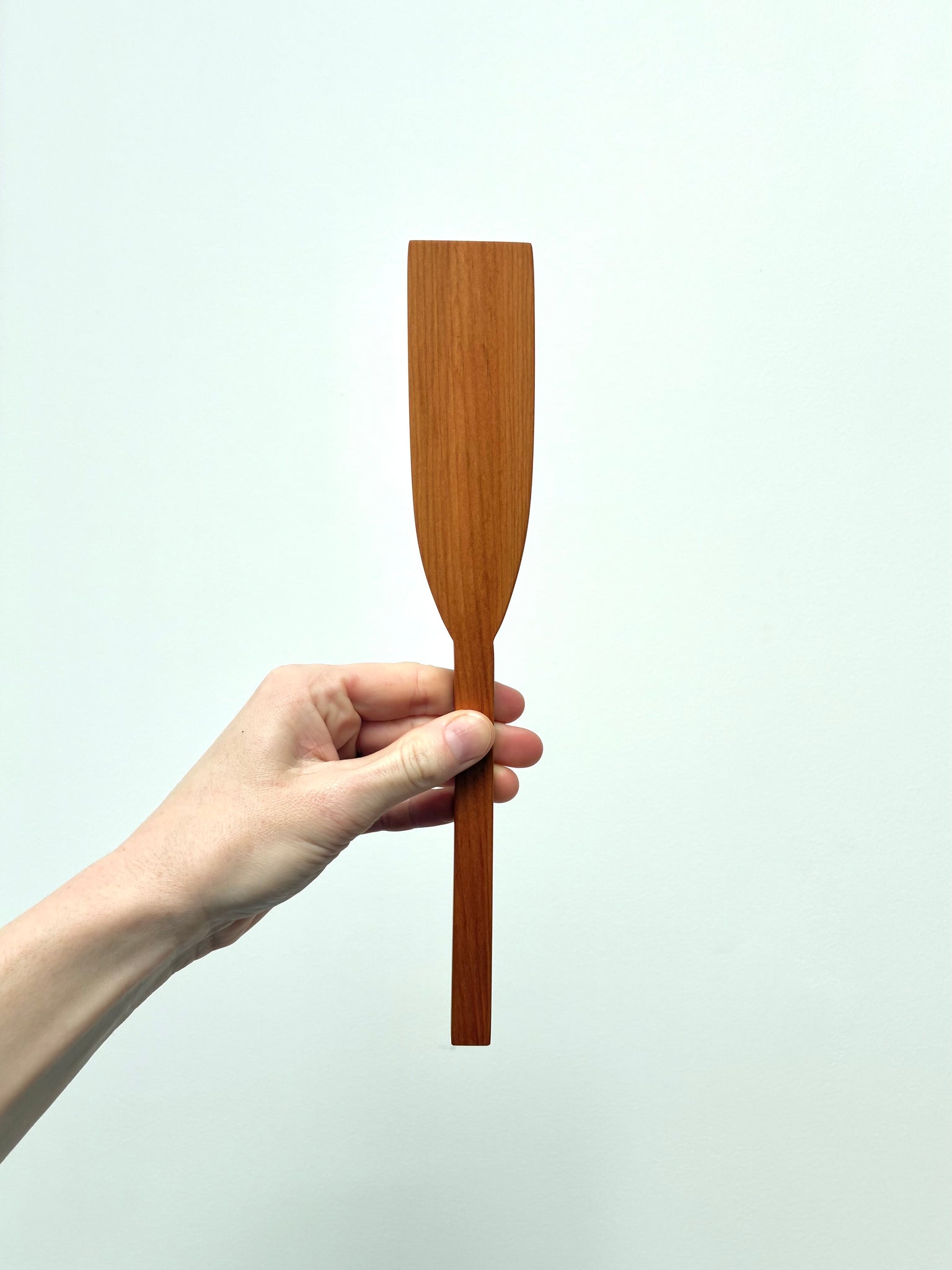 The Mini Spatula, handmade in Mataī, this mini spatula is one of my first Petley pieces and remains a kitchen staple. The square handle sits securely in the hand; the mitred end slides under edges, scrapes cleanly, and flips with control. Small enough for omelettes, toasties, and camp cooking; tough enough for daily use.