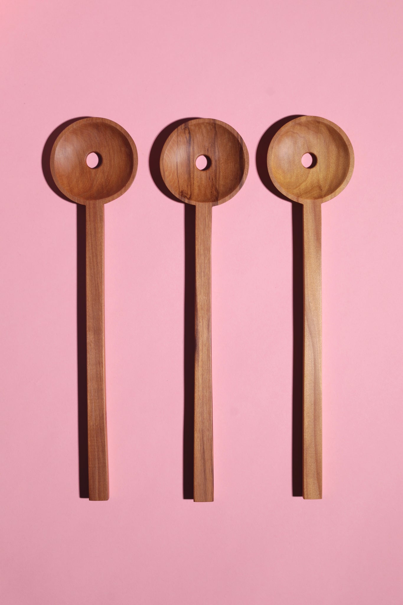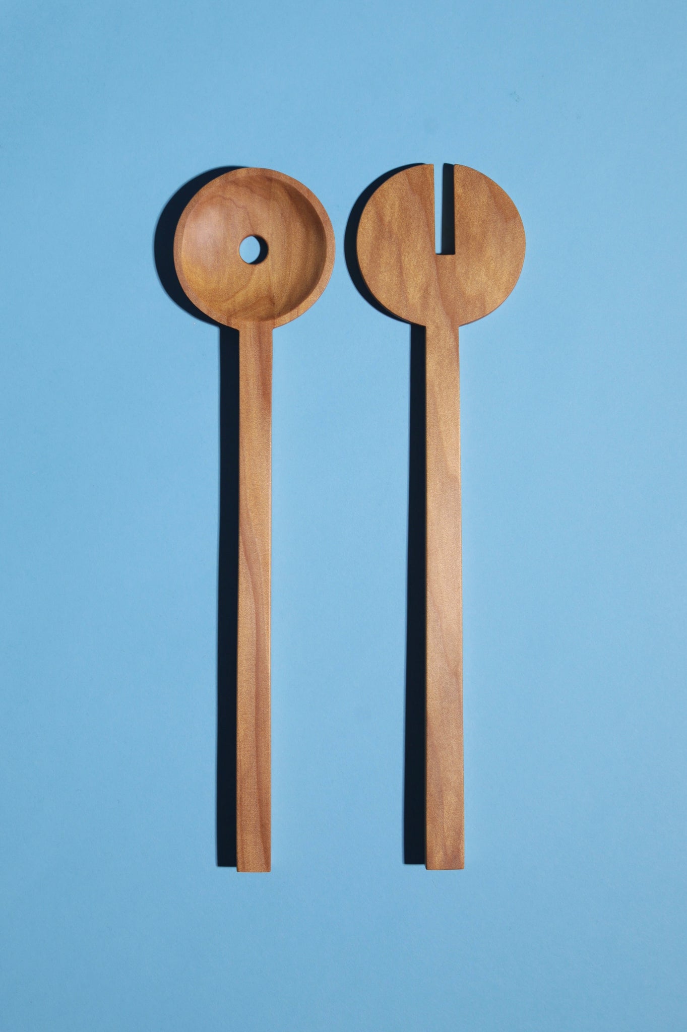 Enjoy serving up salads with these Round Salad Servers. Handmade from native New Zealand timber, these elegant servers are perfect for tossing and serving salads with ease. Their smooth, ergonomic and geometric design ensures a comfortable grip and precise handling, while the rich native timber finish adds a touch of artisanal beauty to your table setting. Each piece is meticulously crafted for durability and style, making them a must-have for any kitchen and table.