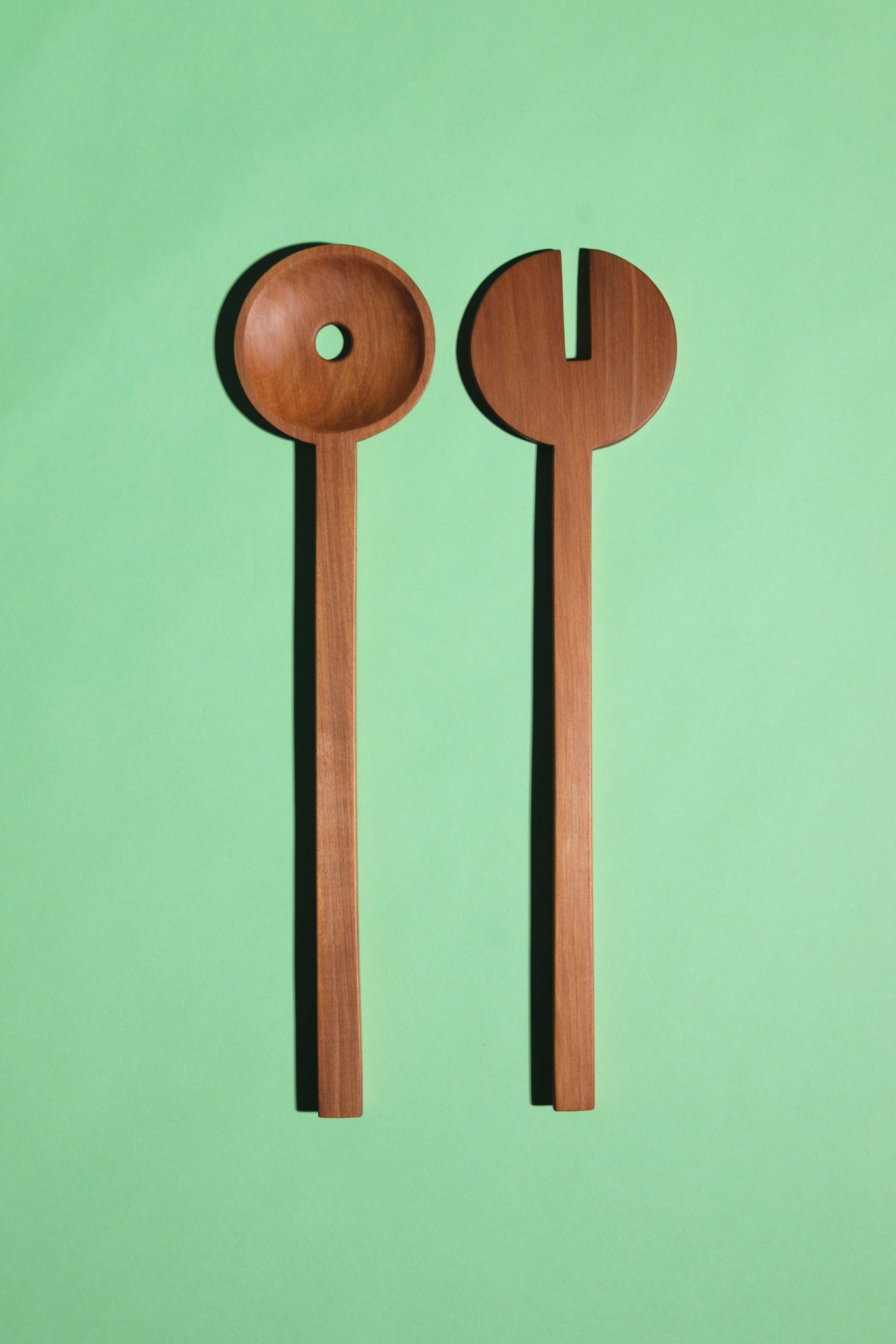 Enjoy serving up salads with these Round Salad Servers. Handmade from native New Zealand timber, these elegant servers are perfect for tossing and serving salads with ease. Their smooth, ergonomic and geometric design ensures a comfortable grip and precise handling, while the rich native timber finish adds a touch of artisanal beauty to your table setting. Each piece is meticulously crafted for durability and style, making them a must-have for any kitchen and table.